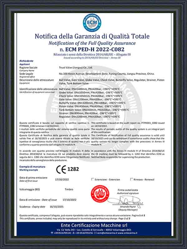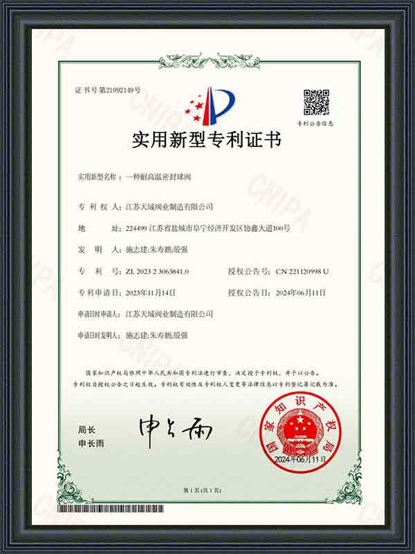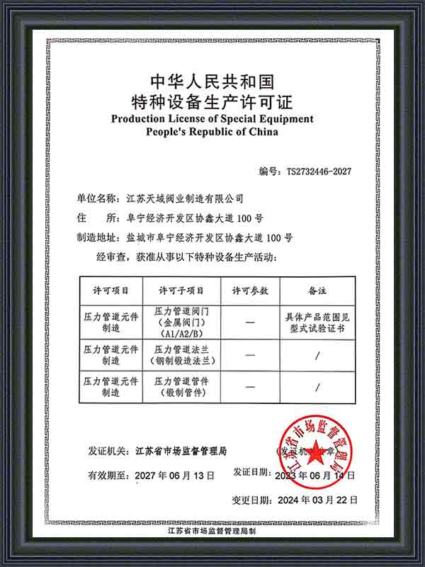 Il software di gestione ERP utilizzato dall’azienda è certificato ISO9001 e in attesa di certificazioni TS, HSE, EAC, API6D, API602, API624, ISO15848, API607, API6FA, ISO10497, TA-Luft, SIL, CE. I prodotti principali includono valvole ultra-bassa temperatura, valvole per idrogenazione, valvole a stantuffo, valvole multi-vie, valvole di fondo serbatoio, valvole spray e altre valvole speciali personalizzate, principalmente utilizzate in condizioni operative speciali come alta temperatura, alta pressione, forte corrosione, ultra-bassa e ultra-alta temperatura.